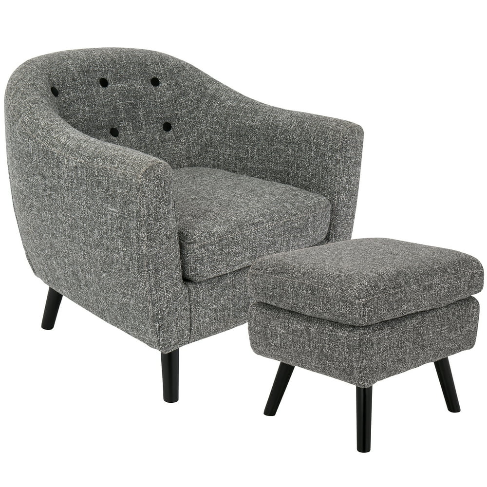 Rockwell Mid-Century Modern Accent Chair And Ottoman In Dark Grey Noise